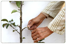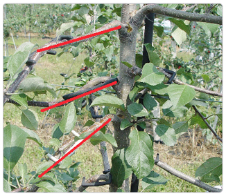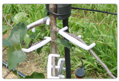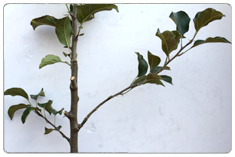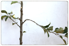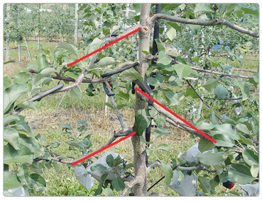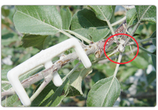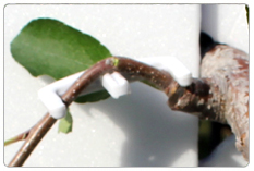 - 화살표*중앙부의 돌기가 나뭇가지를 압박하면 양분흐름을 억제하여 좋은 꽃눈이 형성된다.(유인추+추가효과)