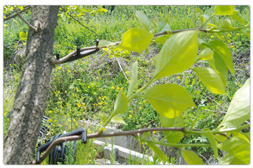 E-클립으로 유인후 유인전에는 나뭇가지와 나뭇가지가 서로 한쪽을 향해 빛을 제대로 볼 수 없지만, E-클립으로 가지를 유인하여 효율적인 공간 활용이 가능합니다.