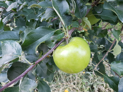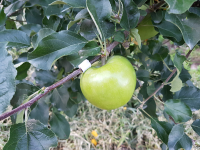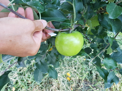 3. 과일이 눌리는 자리의 가지에 붙인다